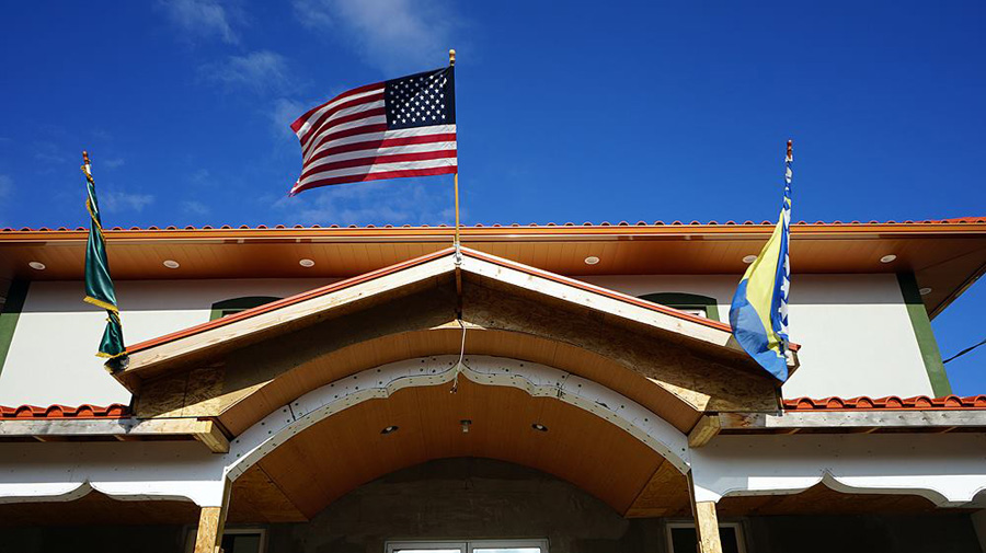 photo : West Bosnian Islamic Center of Utica NY, INCorporated, ulaz pokriven zastavama, arhiv
