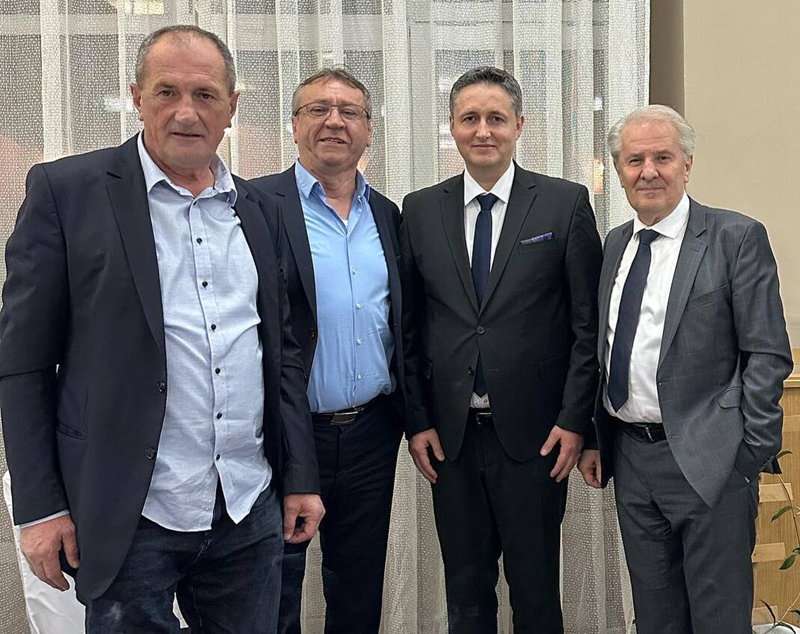 photo : Ramazan Denisa Bećirovića u društvu kolega svoje partije – sa lijeve strane Refik Lendo, sa desne Hadmdija Abdić ‘Tigar’ , arhiv
