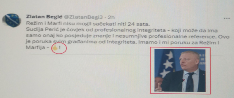 To je učinio megafon i pas tragač Željka Komšića profesor i poslaniku bh Parlamentu Zlatan Begić uz izricanje presude u ‘aferi respiratori’ 06. aprila ove godine u poruci Murphy-u i ‘njegovom režimu’.