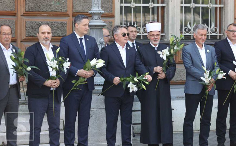 photo : parada političara i ahmedija u Sarajevu u čast žrtava genocida, u sredini su Komšić i Bećirović, arhiv
