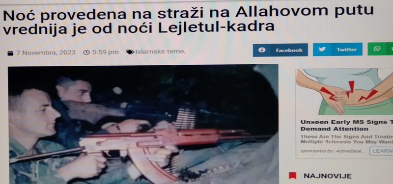 Koliko je važno pucati i stražariti, ratovati dabome, kaže ‘Sveta Knjiga’ a provehabijski bošnjački portal ‘Saff’ na to podsjeća, pomaže Palestini i jača svijest kod kuće, slika uz tekst je iz bh rata