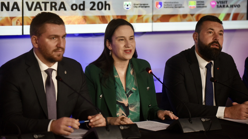 photo : Benjamina Karić i Jasmin Ademović (prvi s lijeva), najava 40 godina Olimpijade i Cetinskog, arhiv
