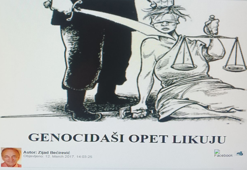 * Riječi genocid i ‘genocidaši’ koji se permanentno protežiraju u medijima najviše su citirane i najviše zastupljene u bh medijima i šire i naravno, upućuje se Srbima i srpskom narodu zbog počinjenog genocida u Srebrenici a ne samo počiniocima. Sa tim se časti svuda i u svako vrijeme, od botova, džemata do izjava političara, jedino glumac to ne vidi i ne čuje. I čest je epitet u naslovima po novinama i portalima. Teško je pobrojati izvore ove glumčeve licemjerne zamke, navešćemo samo neke tipove koji bez te riječi ne otpočinju svakodnevno pisanje i stvaranje kolektivne mržnje među narodima: Reuf Bajrović, Emir Suljagić, Muhamed Mahmutović, portal Bošnjaci.net kojeg je nagradila Benjamina vesela Karić, mnoge slične radionice mržnje i huškačkog naprđivanja skoro istog naziva portali ili face book stranice, profesor Zlatan Begić DF glasnogovornik, Haris Zahiragić podpredsjedničko čudo SDA kadroviranja, silne vehabijske udruge Sanin Muse ili ‘antiDaytonca’ Nihada Veličkovića, hodže i hodžice kao onaj tip sa Breke Velić, savjetnici ili sekretari političkih bošnjačkih partija, niz je predug i teško ga izlistati, evo tu je čak i Šemsudin Mehmedović parlamentarac i vlasnik nove političke ublehe ‘Naprijed’ (Srbi su “genocidaši”, a Hrvati “UZP-ovci”, EU sprema kiparski model u BiH, post decembar 2021.), tu su i načelnici iz Sarajeva Semir Efendić, Nermin Ogrešević iz Cazina …. Niz je nepregledan a jasan i nemoguće ga je promašiti osim ako nisi zlonamjeran, bezobrazan i licemjeran.