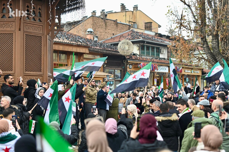 * Sirijci svuda po svijetu slave, evo i u Sarajevu, nekakva ‘nevladina udruga’ Sirijaca ‘Društvo slobodnih Sirijaca’ su ispred ‘Sebilja’ sa zastavama Sirije i uz podršku građana Sarajeva u koloni i u autima (a gdje je notorna Benjamina Karić, zašto je nema tu?), i oni sa tekbirima podsjećaju na slobodu svog naroda. Organizovali su kako kažu ‘zajedničko veselje’ sa braćom u Sarajevu a riječ je navodno o udruženju ‘zaposlenih Sirijaca koji žive i rade u BiH’.