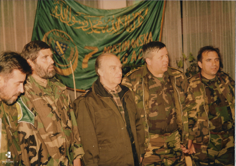 photo : Alija Izetbegović sa generalima Delićem i Mahmuljinom u posjeti mudžahedinima, ratna fotografija, arhiv