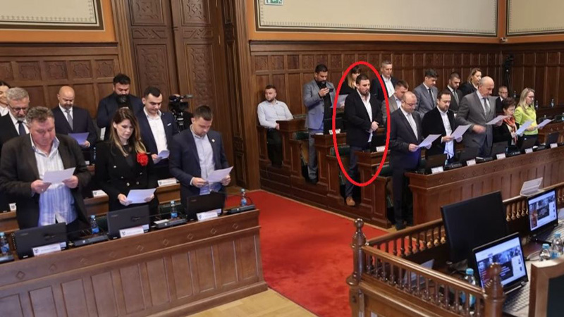 photo : sjednica Gradskog Vijeća Sarajeva, Adi Zahiragić u crvenom krugu pri odbijanju polaganja zakletve, arhiv