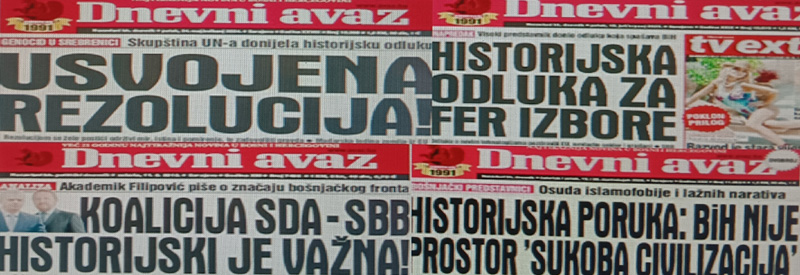photo : screen nekoliko naslova ‘Avaza’ o ‘historisjkim događajima’, arhiv